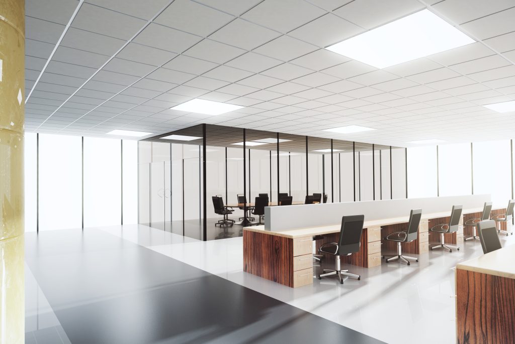 Installation of grid and tile ceiling systems commonly used in offices, healthcare facilities, schools, and commercial buildings.